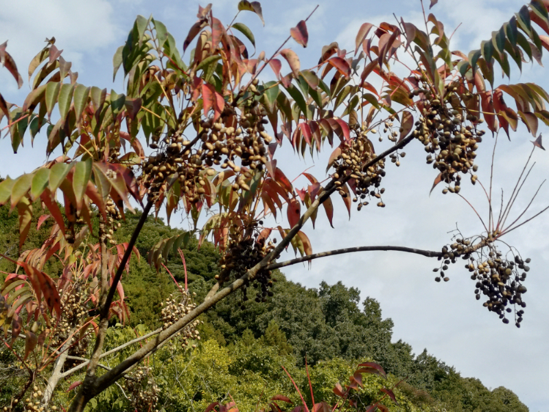 強い西よりの風がが吹いています。波高は4m予報。冬、軒先に遊びにくるマリーナ住民のイソヒヨドリ、渡り鳥のショウビタキ、アトリ・・御一行様のミニミニ・レストランの準備です。軒先の野鳥レストランは竹カウンター席に水浴び場(廃フライパン)付きです。12月1日開業に向けて、提供食材集め中です。昨日、キハダ・・海のキハダではなく、山のキハダ・・の実を採ってきました。