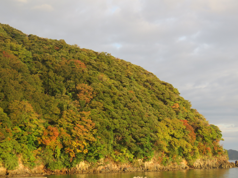 今日は晴れから曇り、20度程まで気温上昇予報。段々と北寄りの風が強くなる予報。出艇なし。片江鼻がちょっと紅葉気味に、山桜から色付いてきました。