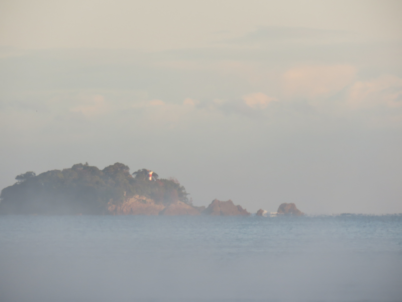 海辺から海面は毛嵐が立っています。コテージの屋根に霜が降りています。最近、猛禽類をよく見かけるように。ノスリがやってきました。