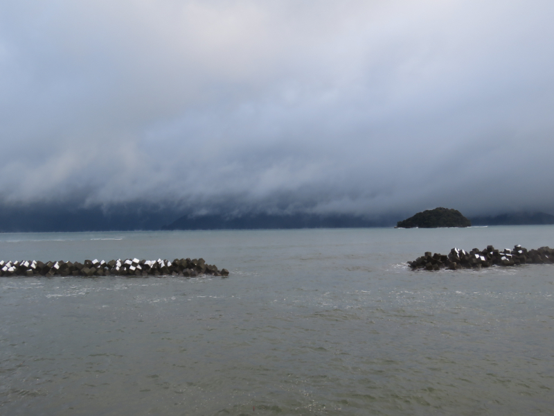 2㎝ほど積もっています。海は大時化です。