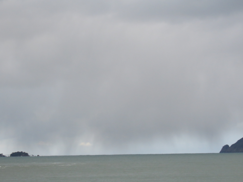 アラレが舞っています。波高予報3m。